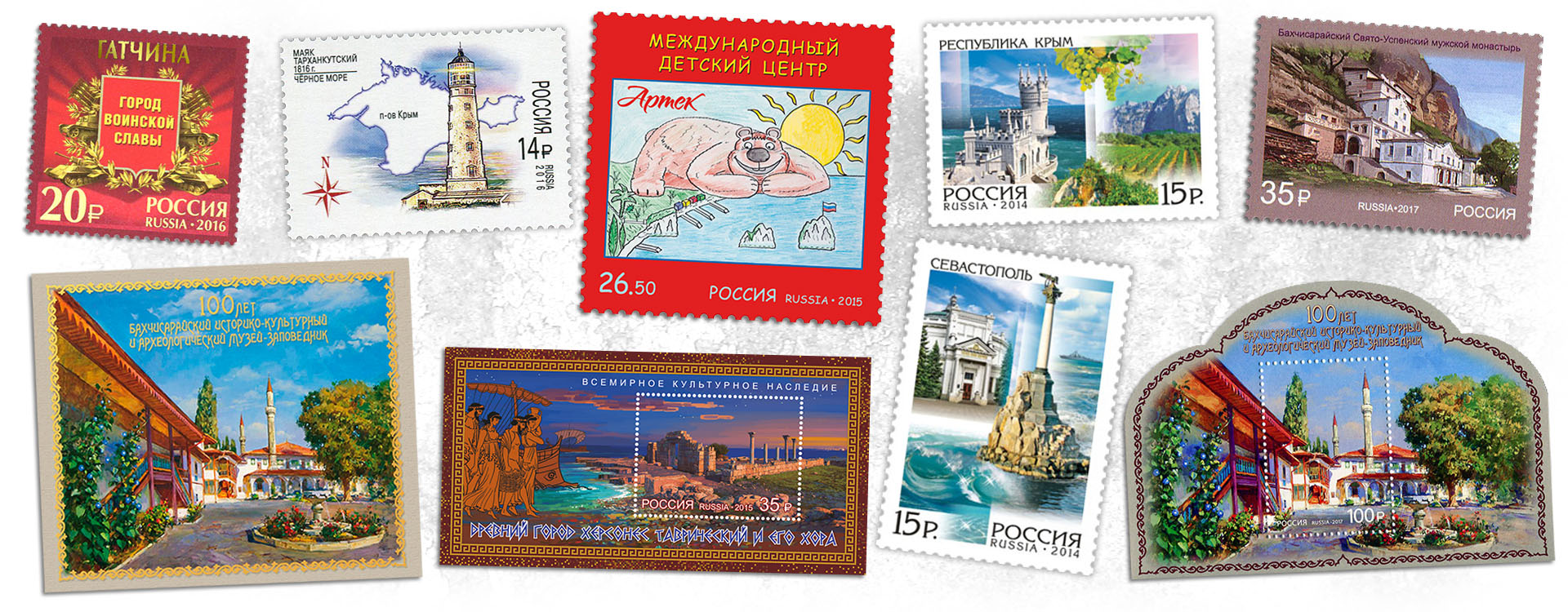 * марки России о Крыме или ссылки на изображение блока, которые исключены из каталога Всемирного почтового союза.