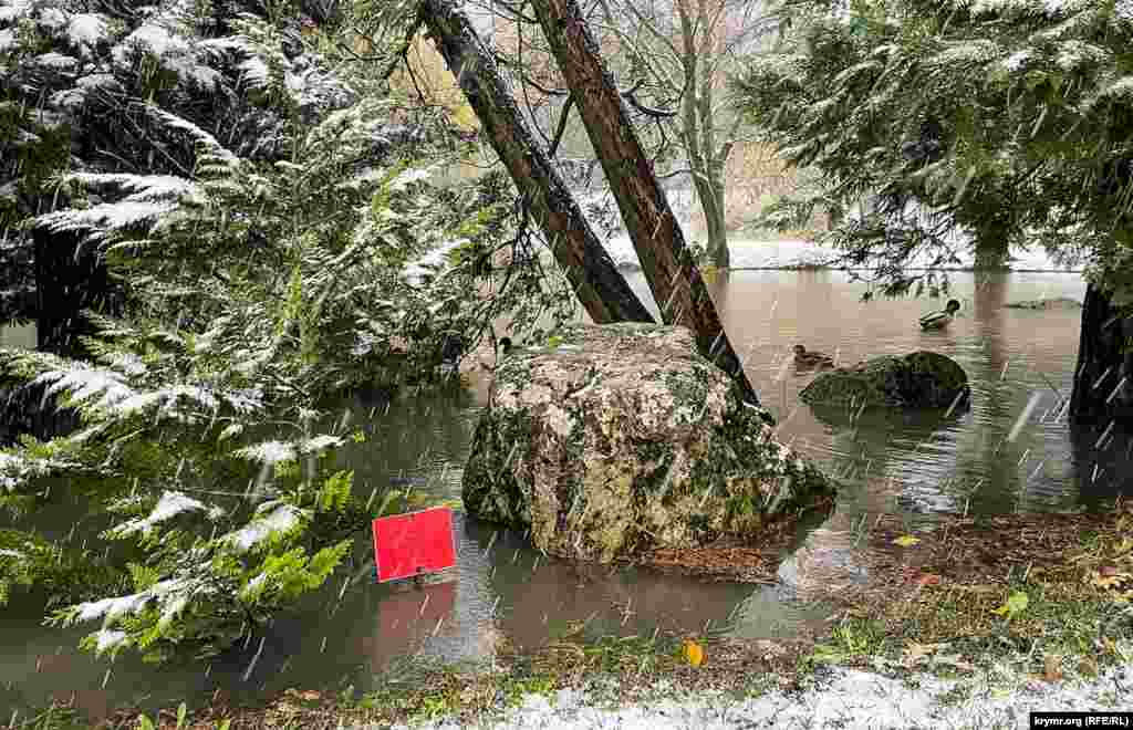 Утром 27 ноября порывы ветра в Симферополе сменились обильным мокрым снегопадом.