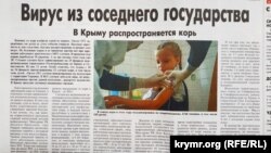 «Крымская правда» в статье «Вирус из соседнего государства» пишет о распространении кори на полуострове. «В 2018 году корью переболели 36 крымчан. А за два месяца 2019 года уже 28, – отмечает издание. – Столько случаев было зафиксировано по состоянию на 25 февраля межрегиональным управлением Роспотребнадзора по Крыму и Севастополю. Из них – 13 детей. Только с 18 по 24 февраля зарегистрированы 12 случаев кори, в том числе семь детей. «Около 20% случаев импортированы на полуостров с территории (материковой – КР) Украины. В 86% случаев заболели лица, не иммунизированные против данной нозологии», рапортует ведомство. В Крыму проходит активная вакцинация горожан», – отмечает издание. Газета со ссылкой на главного внештатного специалист по инфекционным заболеваниям российского Минздрава Крыма Олега Козловского пишет, что вакцина от кори не опасна и безвредна. «В советское время без нее или медицинского отвода от нее (по причине аллергии, различных системных, аутоиммунных заболеваний) не принимали малышей ни в детские сады, ни в школы, – рассказал Козловский. – Во время перестройки отношение к этому изменилось – теперь родители могут решать: делать прививку от кори своему ребенку или нет». Как результат, процент иммунной прослойки населения по этому недугу существенно снизился. В ведомстве настоятельно рекомендуют лицам, не иммунизированным, не имеющим сведения об иммунизации, а также планирующим выезд на материковую Украину, в страны, неблагополучные по заболеваемости корью, заблаговременно пройти двукратную иммунизацию против данного заболевания, подчеркивает КП.