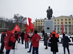 Участники пикета украсили свою одежду в честь дня, который считают праздничным, деталями красного цвета: повязками, шарфами, кто-то поверх зимней куртки надел красную ветровку – благодаря этому группу сталинистов сразу можно было отличить от прохожих и посетителей близлежащего мини-рынка, где торгуют елками и мясом.