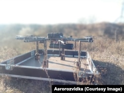 На этом снимке, опубликованном волонтерским проектом «Aerorozvidka», разрабатывающей малые беспилотники для фронта, виден дрон-октокоптер украинского производства с двумя установленными гранатами.