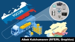 "Настоящее Время" уже рассказывало о резком росте экспорта бытовой техники и электроники из Казахстана в Россию: по совпадению он начался почти сразу же после того, как Россия вторглась в Украину.