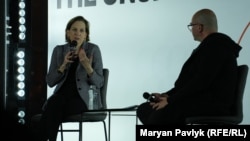 На Львовском медиафоруме историк, эксперт по устойчивости демократии и опасности авторитаризма Энн Эпплбаум выступила с докладом «Сильнее силачей: путь к свободе в сумерках демократии».