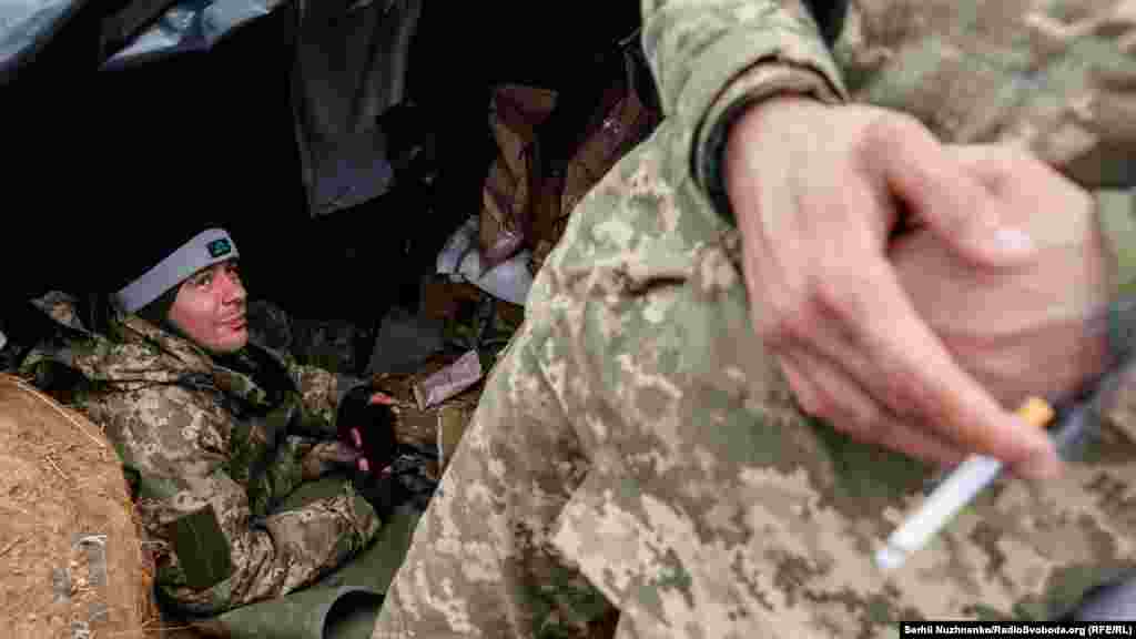 Украинские военные отдыхают на передовых позициях в Донецкой области, 18 апреля 2022 года