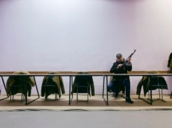Местный житель готовит оружие в тире, построенном в советские времена.