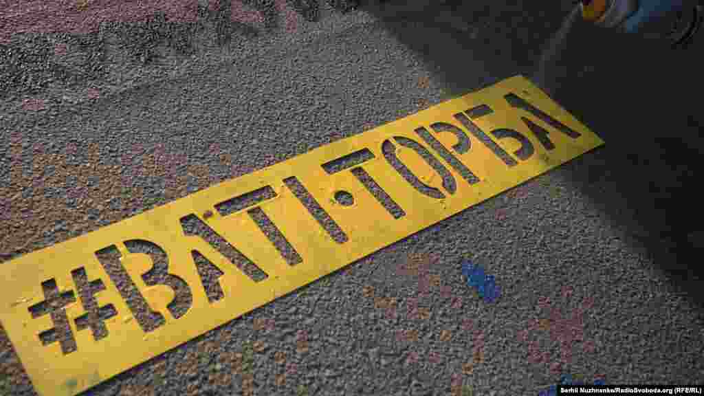 Во время акции активисты краской нанесли на подходе к офису Медведчука надписи «FreeSentsov»