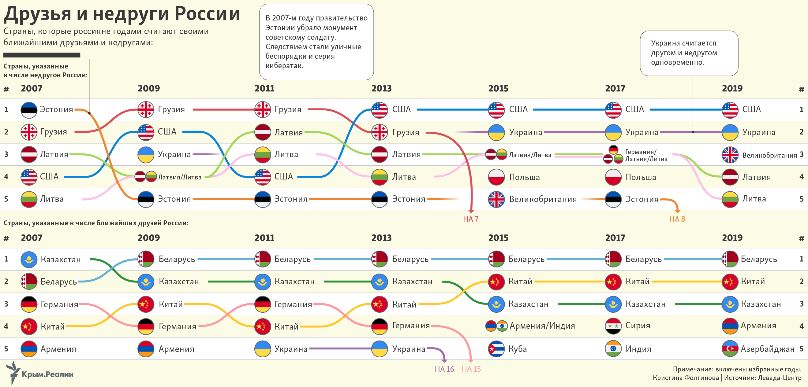 Страны, которые россияне годами считают своими ближайшими друзьями и недругами