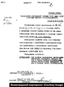 "Сам изолятор, где подготовляли людей к отправке на расстрел, не соответствовал действительности. Стены в изоляторе были деревянные, и малейший крик мог отразиться на лицах сидящих в изоляторе, осужденных к ВМН (высшая мера наказания. – РС), и такие условия работы нас заставляли бояться малейшего крика", – рассказывал капитан Михаил Матвеев в показаниях по своему делу в 1939 году.