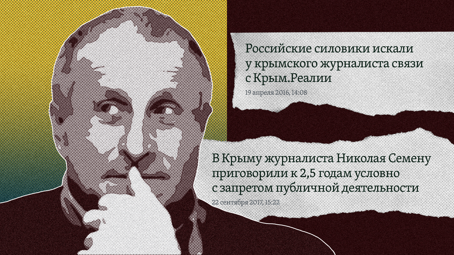 Корреспонденты Крым.Реалии уже семь лет освещают жизнь на полуострове, предоставляя крымчанам полную и объективную информацию о происходящем в Крыму. Вы не всегда знаете их настоящие имена – большинству из них приходится использовать псевдонимы. Это связано с тем, что с 2014 года независимые журналисты подвергаются преследованиям на полуострове. В этом спецпроекте Крым.Реалии собрали лишь часть таких историй – о людях, которые сотрудничали с нашей редакцией. На самом деле случаев преследований СМИ в Крыму еще больше.