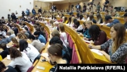 В университете собралось несколько сотен желающих написать диктант: ученики столичных школ, студенты, известные украинцы, сотрудники дипломатических представительств.