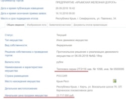 Федеральное государственное унитарное предприятие «Крымская железная дорога» инициировала около 50 аукционов по продаже имущества предприятия почти на 40 миллионов рублей, заявленных как начальная цена всех лотов.