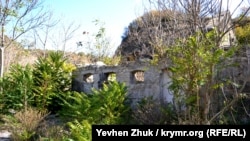 Дорога через балку шла из средневекового порта Авлита, принадлежавшего княжеству Феодоро, к крепости Каламита в Инкермане. Остатки подпорных стен, наверно, помоложе. Вот это место дачники сейчас используют для автостоянки.