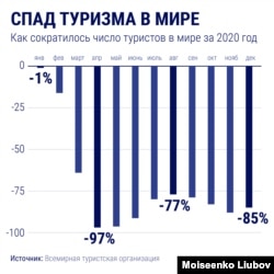Сфера международного туризма и путешествий, а также связанные отрасли тоже оказались в числе наиболее пострадавших. По состоянию на 11 марта 2021 года в подавляющем большинстве стран мира продолжают действовать ограничения, связанные с коронавирусом, но Всемирная туристская организация отмечает постепенное возвращение к росту по ключевым показателям (заполняемость самолетов, гостиниц и так далее).