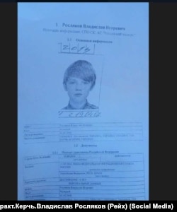 «ВКонтакте», например, создали специальную группу «Теракт.Керчь.Владислав Росляков (Рейх)», в которой публикуются документы, связанные с погибшим. Там обнародована выписка из паспорта Рослякова, согласно которой парень родился 2 мая 2000 года в Керчи, а в 2014 году ему был выдан российский паспорт в связи с достижением 14 лет.
