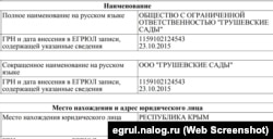 ООО «Грушевские сады», по информации Федеральной налоговой службы России, зарегистрировано в Грушевке в 2015 году.
