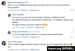 Также обсуждение развернулось в сообществе «Инцидент Крым|Симферополь|Севастополь ДТП ЧП», но 90% комментариев были взаимными оскорблениями членов группы или причитаниями, почему рассказывают о работе ПВО.