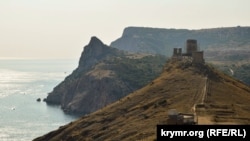 Остатки обоих мощных укреплений уцелели и после Второй мировой, несмотря на то, что после войны сооружения использовались как полигон для испытания авиабомб. Прогуляться к форту Южный – приятное и познавательное путешествие. Путь начинается с горы Крепостной, от развалин Генуэзской крепости Чембало. На фото – здания бывшей метеостанции, а между ними тропа, которая идет по оврагу Шайтан-Дере.