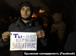 Возле здания подконтрольного Кремлю Киевского райсуда Симферополя проходит флешмоб в поддержку задержанного российскими силовиками адвоката Эмиля Курбединова.