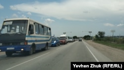 Сегодня в 15:00 на автодороге Саки – Евпатории образовалась пробка длиной около семи километров. Об этом сообщает корреспондент Крым.Реалии.