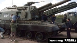 В поселке Ленино на востоке Крыма к 9 мая военные устроили смотр техники российской армии. Как сообщает корреспондент Крым.Реалии, ранее в данном населенном пункте смотры или парады российской военной техники ко Дню победы не проводились.