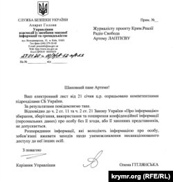 Об этом говорится в ответе СБУ на запрос Крым.Реалии.