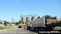 Грузовые автомобили с бетонными плитами характерной толщины в пятницу 21 августа были замечены возле проходной Керченского рыбного порта, в очереди на паром, следующий в Российскую Федерацию.