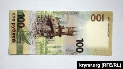 В банках Крыма стали выдавать купюры достоинством 100 рублей, выпущенные Банком России и посвященные Крыму и Севастополю, сообщает корреспондент Крым.Реалии.