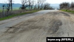 Работы по ремонту дороги, ведущей от Керчи в сторону популярного у туристов поселка Курортное, до сих пор в замороженном состоянии. Часть трассы так и остается с ямами, поплывшим и разбитым асфальтом, гравием, сообщает корреспондент Крым.Реалии.