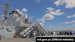 Участникам торжественных мероприятий по случаю открытия активной фазы многонациональных учений «Си Бриз–2016» показали эсминец ВМС США «Росс». Их ознакомили с организацией службы, вооружением и оснащением корабля. Об этом сообщает пресс-служба Министерства обороны Украины.
