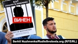 В Киеве, на Почтовой площади 25 августа прошла акция в поддержку Олега Сенцова и Александра Кольченко, приуроченная к годовщине их ареста, сообщает корреспондент Крым.Реалии.