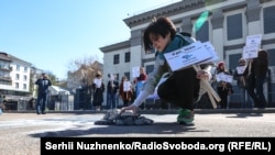 Возле здания посольства России в Киеве в рамках акции «Где Эрвин?» 25 апреля активисты нарисовали 3D-рисунок пропасти, который символизирует пропавших крымчан. Об этом сообщает корреспондент Крым.Реалии.