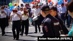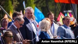 В Симферополе прошло первомайское шествие, в котором приняли участие, по данным российской администрации города, более 25 тысяч человек. Среди них – крымские чиновники, депутаты, руководство города, члены профсоюзов и работники различных организаций.