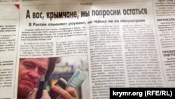 «Крымская правда» в статье «А вас, крымчане, мы попросим остаться» рассказывает о том, к чему на полуострове привели санкции. По информации издания, российские мобильные операторы МТС, «Вымпелком» и «Мегафон» отменяют роуминг по территории России. «На полуострове роуминг останется – у нас разговаривать по телефону будет так же дорого и плохо, как и все последние четыре года», – пишет газета.