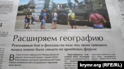 «Крымская газета» в материале «Расширяем географию» рассказывает о Международном военно-техническом форуме «Армия-2019», который прошел в Севастополе. В его рамках состоялся «динамический показ боевых возможностей и вооружения Черноморского флота». «Тысячи севастопольцев и гостей имели возможность увидеть мощь Черноморского флота», ‒ отметил по этому поводу подконтрольный Москве вице-губернатор Севастополя Илья Пономарев. В ходе «динамического показа свое мастерство в преодолении различных препятствий и вождении по пересеченной местности продемонстрировали экипажи танков Т-72Б3 и бронетранспортеров БТР-82А». «Одним из самых ярких эпизодов форума стал «танковый вальс». Личный состав морской пехоты и подразделений разведки Черноморского флота разыграл эпизод по уничтожению диверсионной группы условного противника с демонстрацией приемов рукопашного боя», ‒ написала КГ.