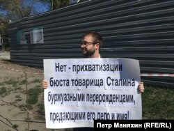 Впрочем, некоторых коммунистов место установки бюста не устроило. Еще до официальной церемонии открытия рядом с обкомом с одиночным пикетом встал член Российской коммунистической рабочей партии (РКРП), представившийся Олегом. Он рассказал, что был членом инициативной группы по установке бюста, но вышел из нее после решения ставить памятник Сталину на территории обкома КПРФ.