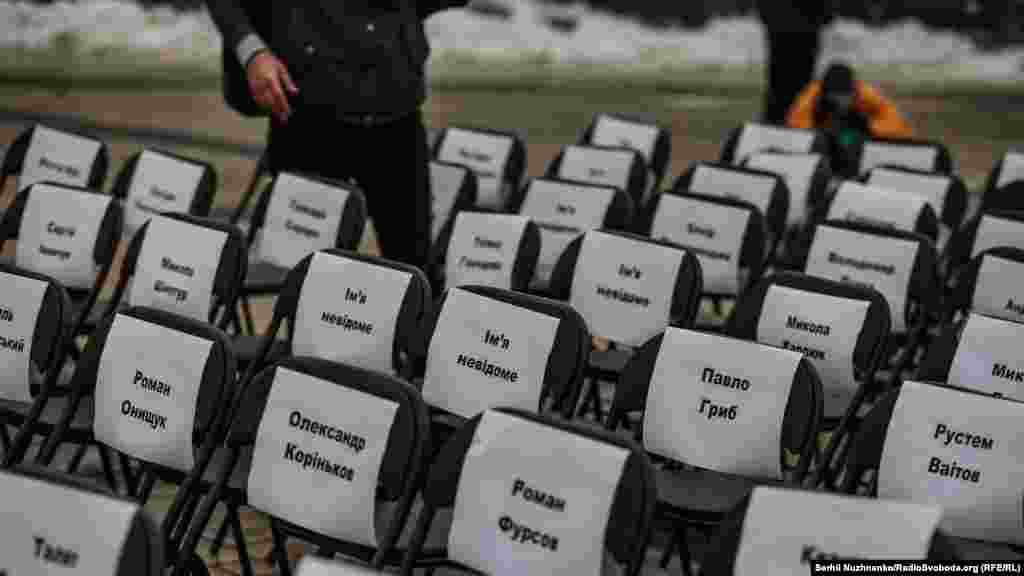 15 ноября на Михайловской площади в Киеве прошла акция «Пустые стулья» в поддержку украинских политзаключенных в России, а также на временно неподконтрольной украинской власти части территории Донбасса.
