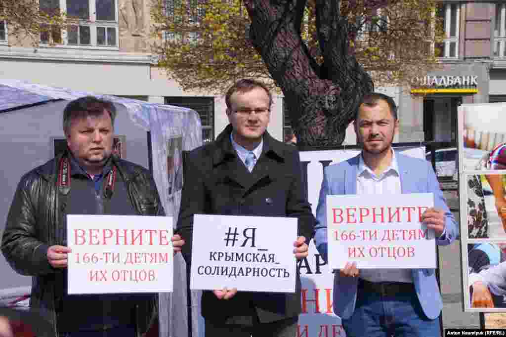 «Это акция в поддержку детей. В то время, когда идут суды, аресты... 167 детей живут без отцовской опеки. Мы хотим, чтобы весь мир знал об этом. Мы информационно сегодня привлекаем внимание к тому, что происходит в оккупированном Крыму. Массовые аресты состоялись неделю назад», – сказал на акции Эрнест Абкелямов, председатель культурного центра крымских татар во Львове.27 марта в Крыму прошли массовые обыски в домах крымских татар, в том числе активистов общественного объединения «Крымская солидарность». В результате задержали 24 человека.