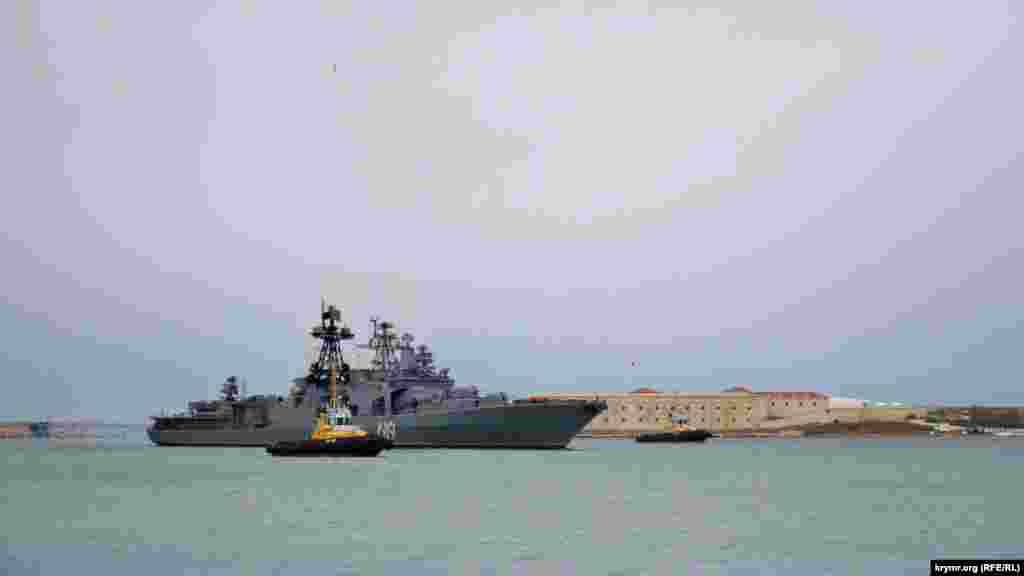 Впервые с момента аннексии Крыма в Черное море зашел корабль, который относят к основной ударной силе Военно-морского флота России в дальней морской зоне (среди надводных кораблей). Об этом на своей странице в Фейсбуке написал глава наблюдательного совета украинской общественной организации «Майдан иностранных дел», главный редактор информационного агентства Black Sea News Андрей Клименко.