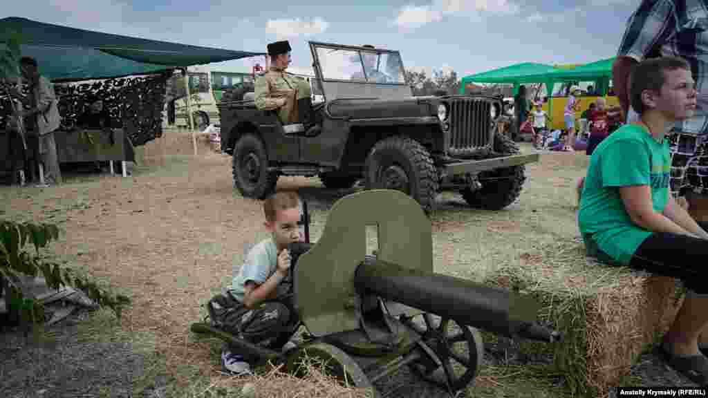 Первый фестиваль казачьей культуры «Крымские тулумбасы» состоялся в долине Красных пещер в 2012 году. После аннексии полуострова Россией в 2014 году мероприятие сделало заметный крен в военно-прикладную сторону. Очередной фестиваль 9 сентября в курортной Николаевке Симферопольского района – яркое тому подтверждение. Хотя на нынешний «Крымских тулумбасах» были и народные песни, и выставка работ умельцев, и приготовление кулеша, и верховая езда на лошади. Кроме того, прошло соревнование по рубке шашкой, причем, под «аккомпанемент» очередей из «электронного» автомата Калашникова. По словам участников, гостей мероприятия было меньше, чем в прежние годы.
