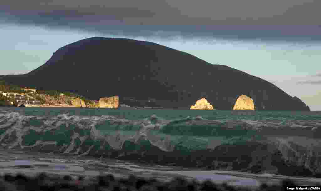 Гурзуф: волнение моря у подножия горы Аю-Даг | Крымское фото дня