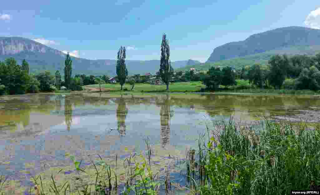 Озеро на окраине села Соколиное после ливней в горах | Крымское фото дня