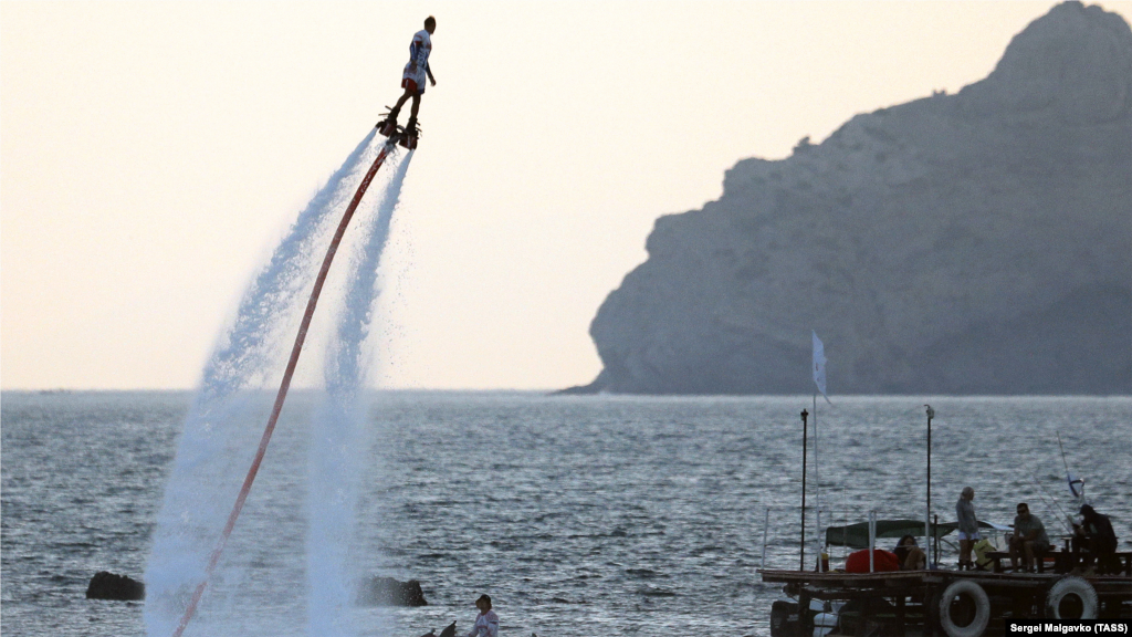 Мужчина летает на флайборде около пляжа «Мохито» в Судаке | Крымское фото дня