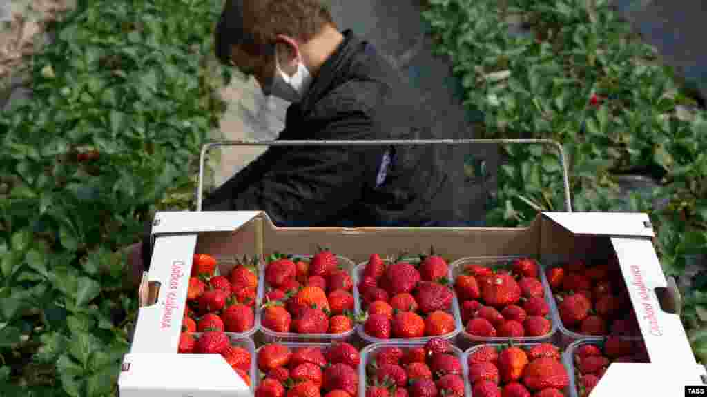 В тепличном хозяйстве в селе Холмовка Бахчисарайского района начали сбор клубники. Собирают ягоду здесь исключительно вручную, затем укладывают сначала в пластиковый контейнер, а потом в ящик. Пик сбора клубники приходится на май. В день собирают до восьми тонн, за сезон – до 30 тонн с гектара.