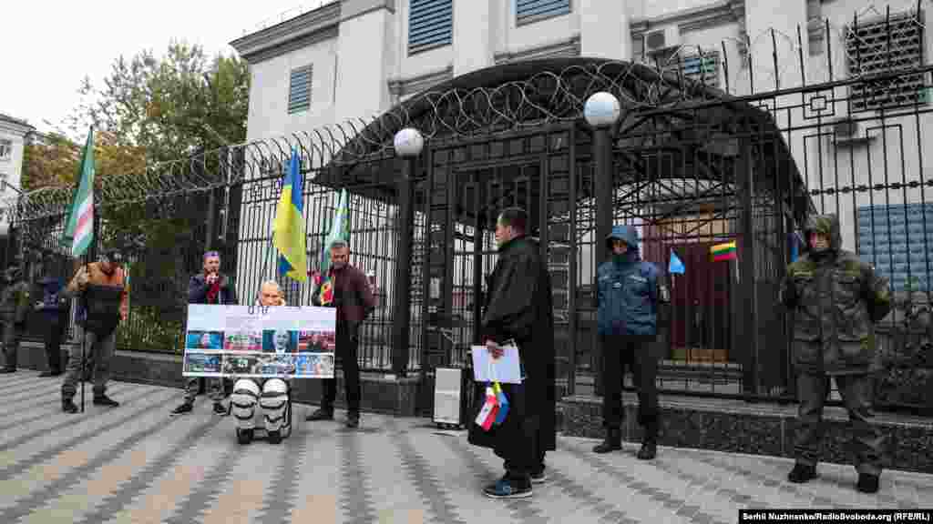 Во время акции бывшие политзаключенные – украинцы и крымские татары, которые побывали в заключении в России и аннексированном Крыму – дали показания в импровизированном «Гаагском суде». Таким образом активисты решили «поздравить» с днем рождения президента России.