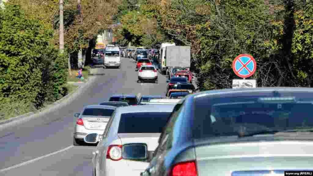 Улица Севастопольская на время ремонта уменьшилась вдвое. Основной поток наблюдается в сторону центра города