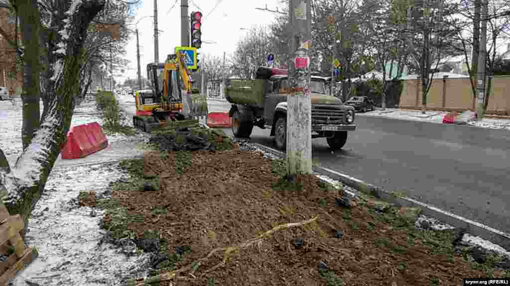 Работают и в грязь, и в слякоть: ремонт дорог в Симферополе (фоторепортаж)
