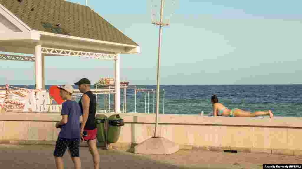 Народ по-разному созерцает морскую стихию с набережной
