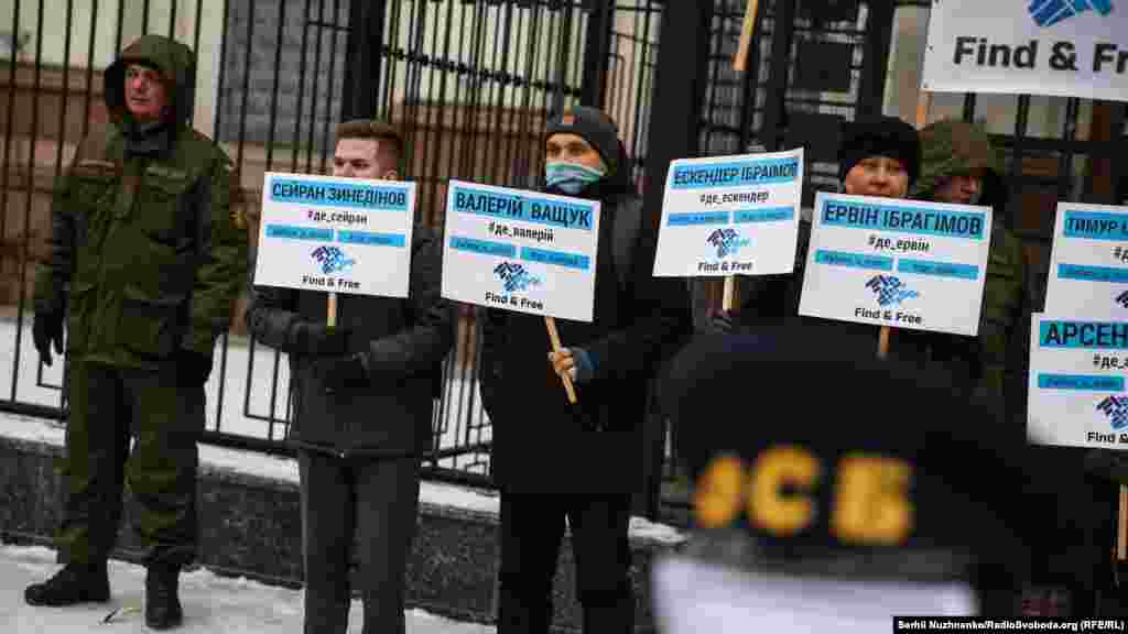 Под посольством России в Киеве прошла акция «Молчаливое знание или следствие ведут преступники», в рамках которой активисты общественной инициативы «КрымSOS» требовали от России расследовать насильственные исчезновения в аннексированном Крыму.