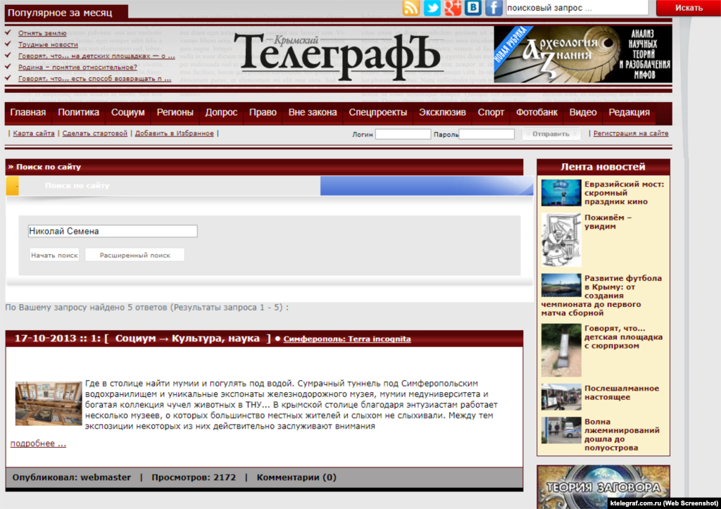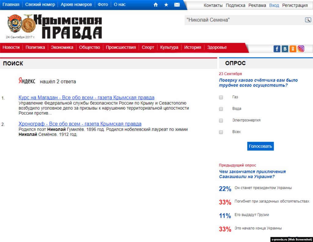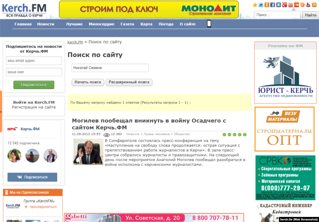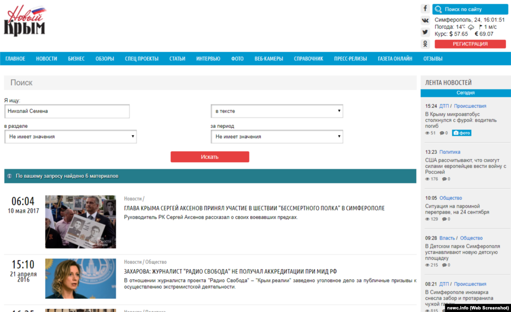 Ведущие крымские СМИ, в разное время упоминавшие Николая Семену, но проигнорировавшие судебный приговор по его делу.
