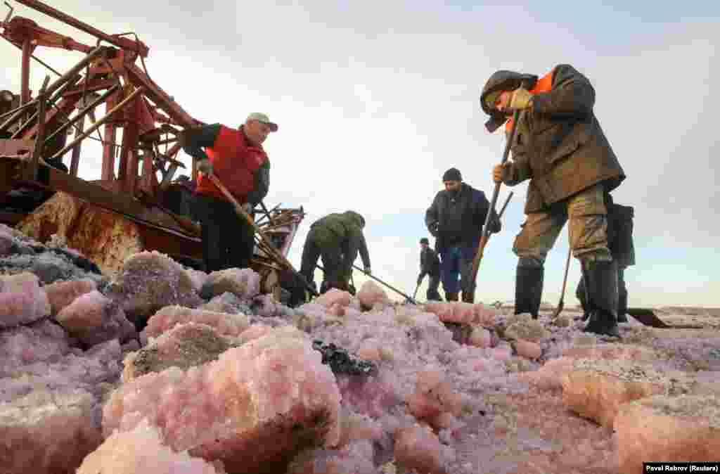 Сбор урожая розовой соли в Крыму